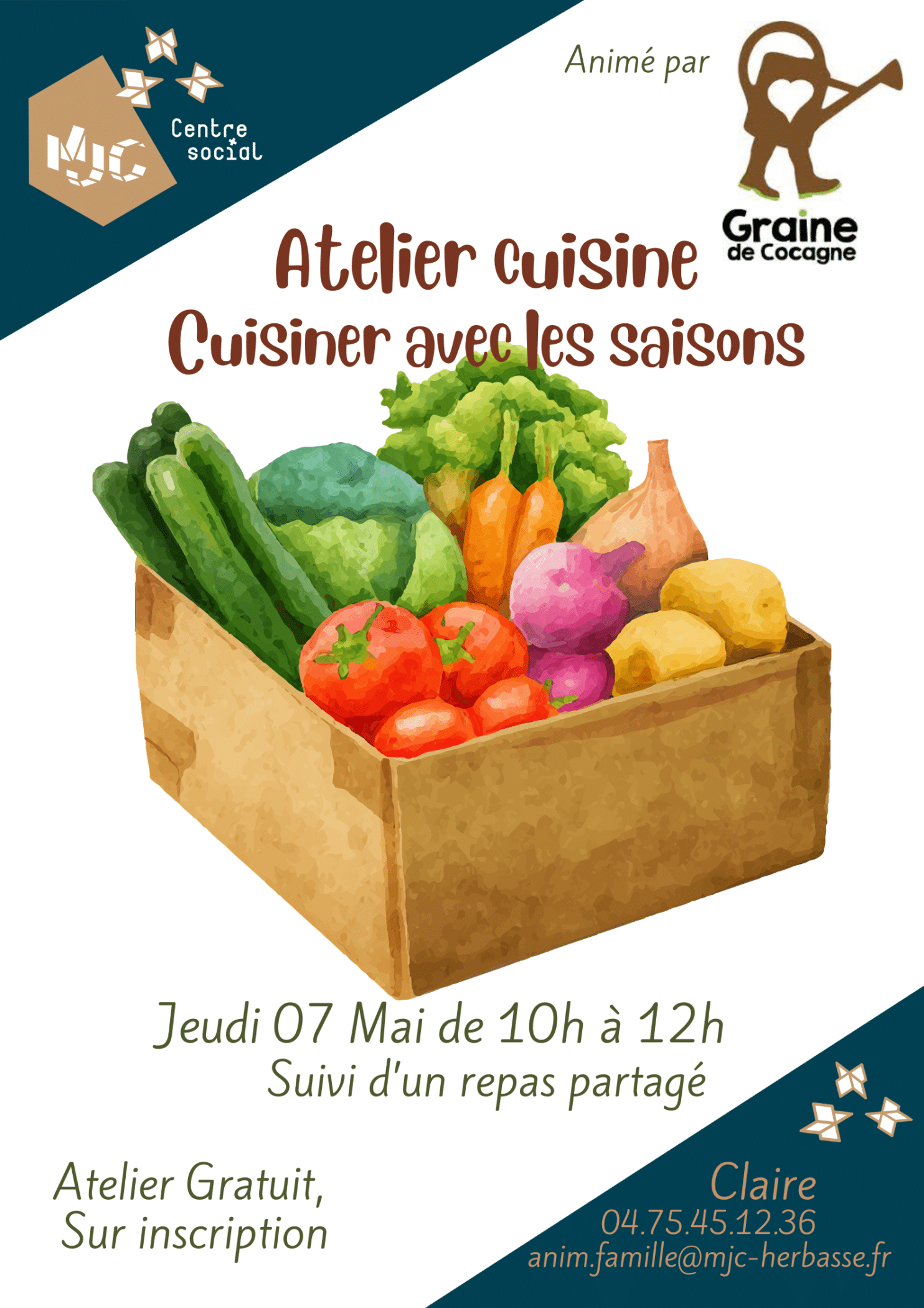 L’association Graine de cocagne vous propose un atelier avec des recettes simples et économiques avec les légumes de saison au jardin.